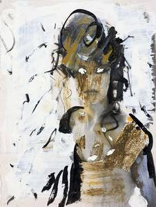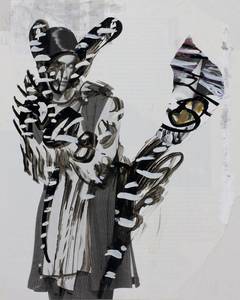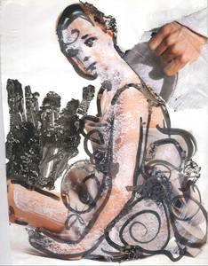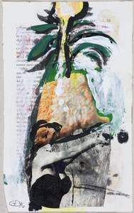 2005, gekapptes Din A4, Mischtechnik auf der Seite einer Zeitschrift