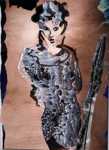 1993, gekapptes Din A4, Mischtechnik auf der Seite einer Zeitschrift