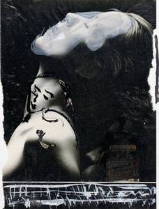 1990, gekapptes Din A4, Mischtechnik auf der Seite einer Zeitschrift